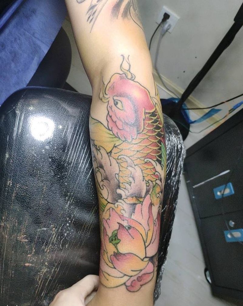 当前位置: 首页 >河南省南阳市纹身店-南阳·鸿蒙纹身纹身图案>鲤鱼纹身图片_手臂新传统纹身图案