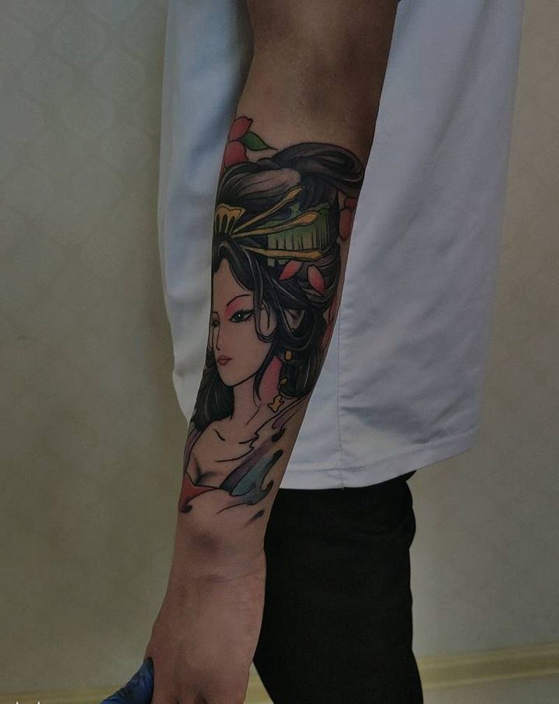 当前位置: 首页 >河南省南阳市纹身店-南阳·鸿蒙纹身纹身图案>艺妓纹身图片_手臂新传统纹身图案