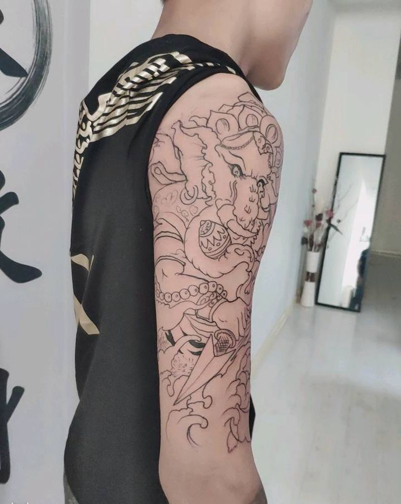 当前位置: 首页 >河南省南阳市纹身店-南阳·鸿蒙纹身纹身图案>象神纹身图片_手臂老传统纹身图案