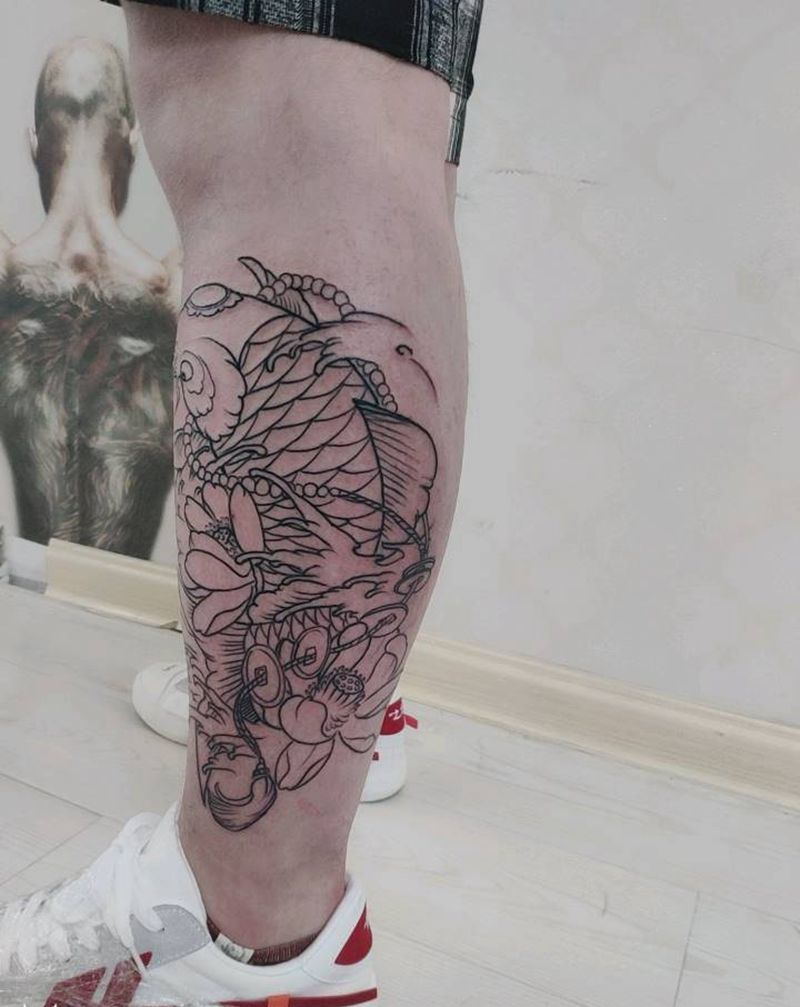 小腿鲤鱼纹身图片_腿部新传统纹身图案