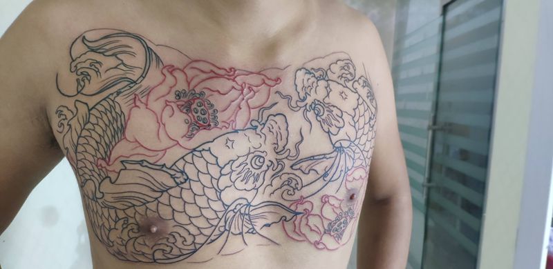 当前位置: 首页 >河南省南阳市纹身店-南阳·鸿蒙纹身纹身图案>鲤鱼线条纹身图片_胸部纹身图案