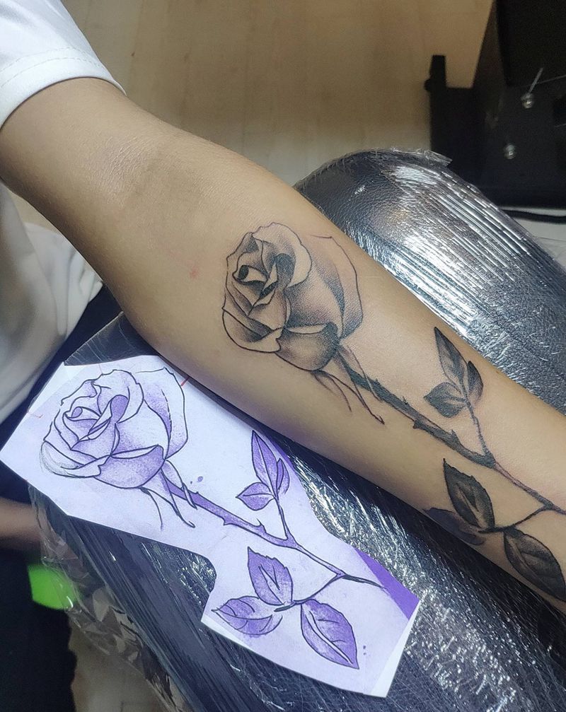 玫瑰纹身图片_手臂新传统欧美写实纹身图案