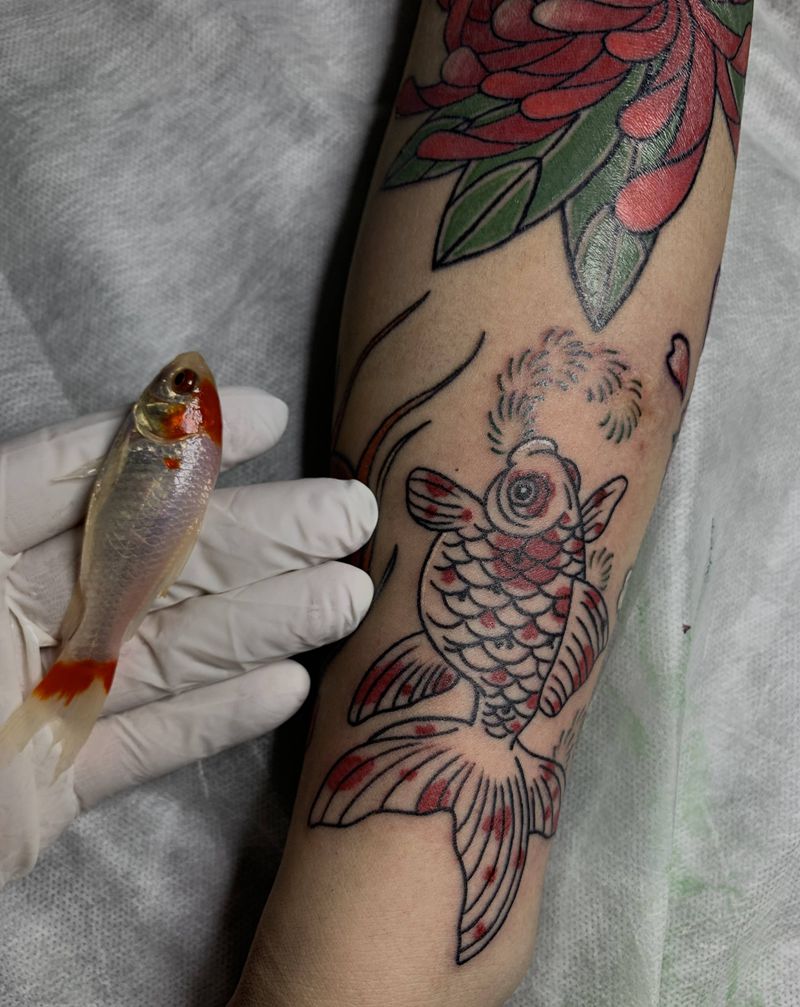 当前位置: 首页 >河南省南阳市纹身店-神雕刺青纹身图案>金鱼纹身图片_手臂老传统鱼纹身图案