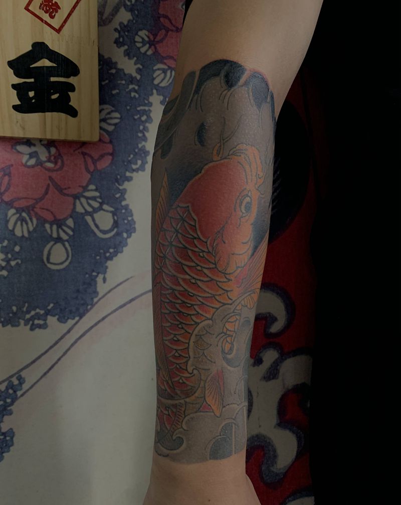 当前位置: 首页 >河南省南阳市纹身店-神雕刺青纹身图案>鲤鱼纹身图片_手臂老传统鱼纹身图案