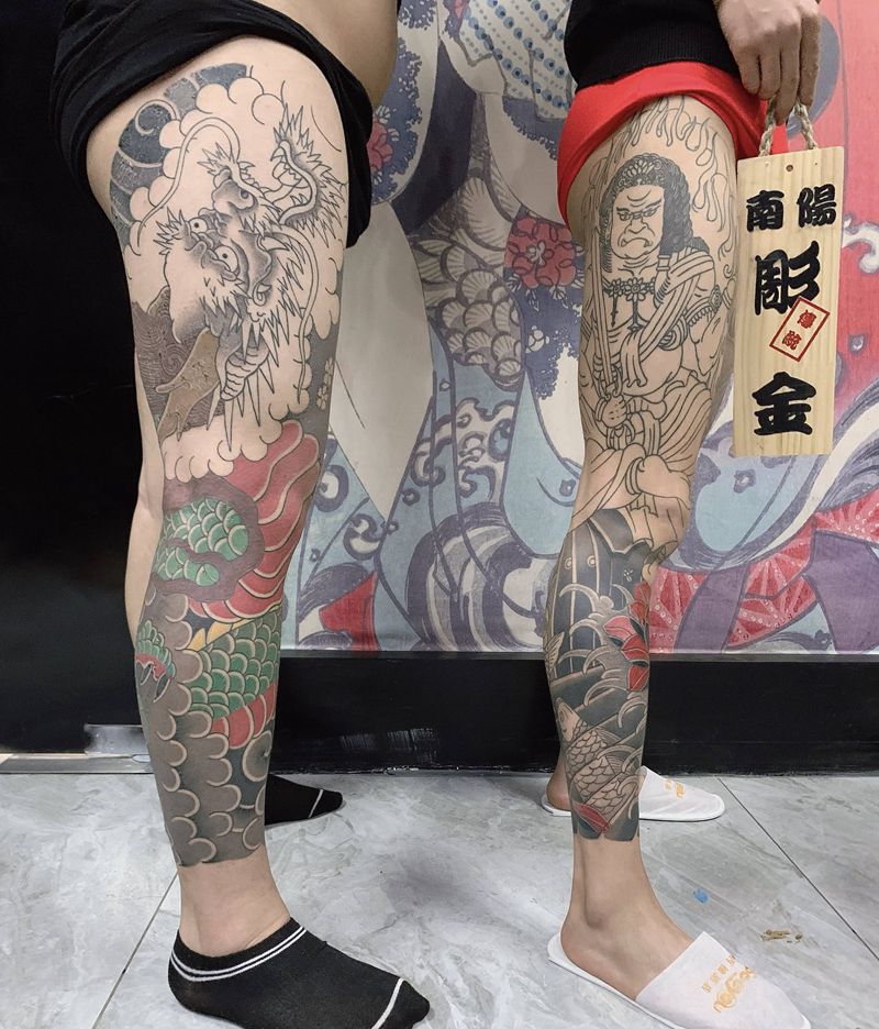 当前位置: 首页 >河南省南阳市纹身店-神雕刺青纹身图案>老传统花腿纹身图片_腿部老传统龙纹身图案