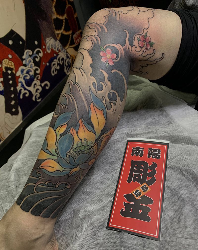 • T网红王老大花腿龙纹身图片_腿部新传统纹身图案