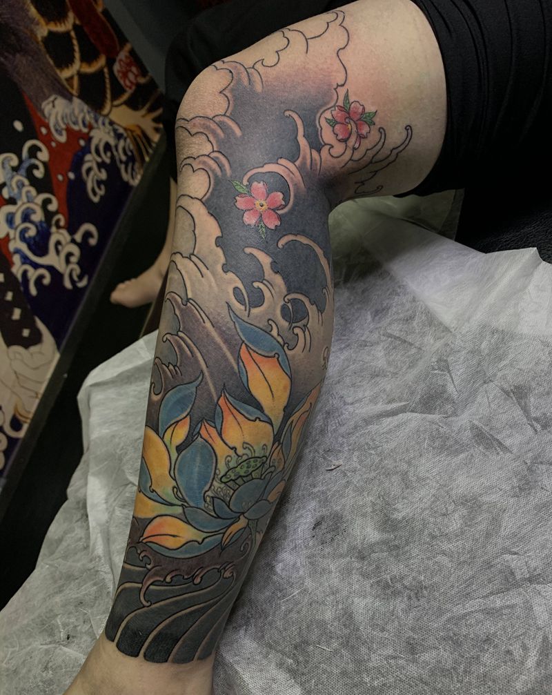 一组15张莲花纹身手