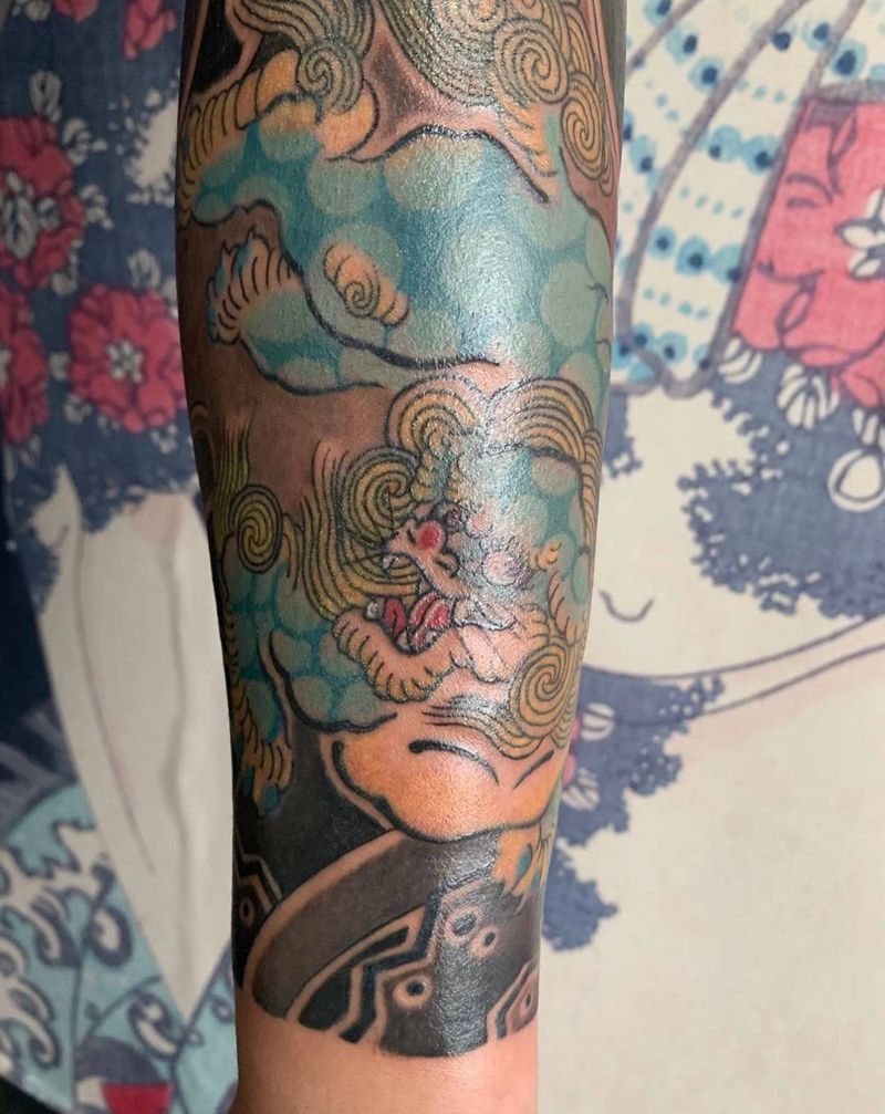当前位置: 首页 >河南省南阳市纹身店-神雕刺青纹身图案>小臂唐狮纹身图片_手臂老传统唐狮纹身图案