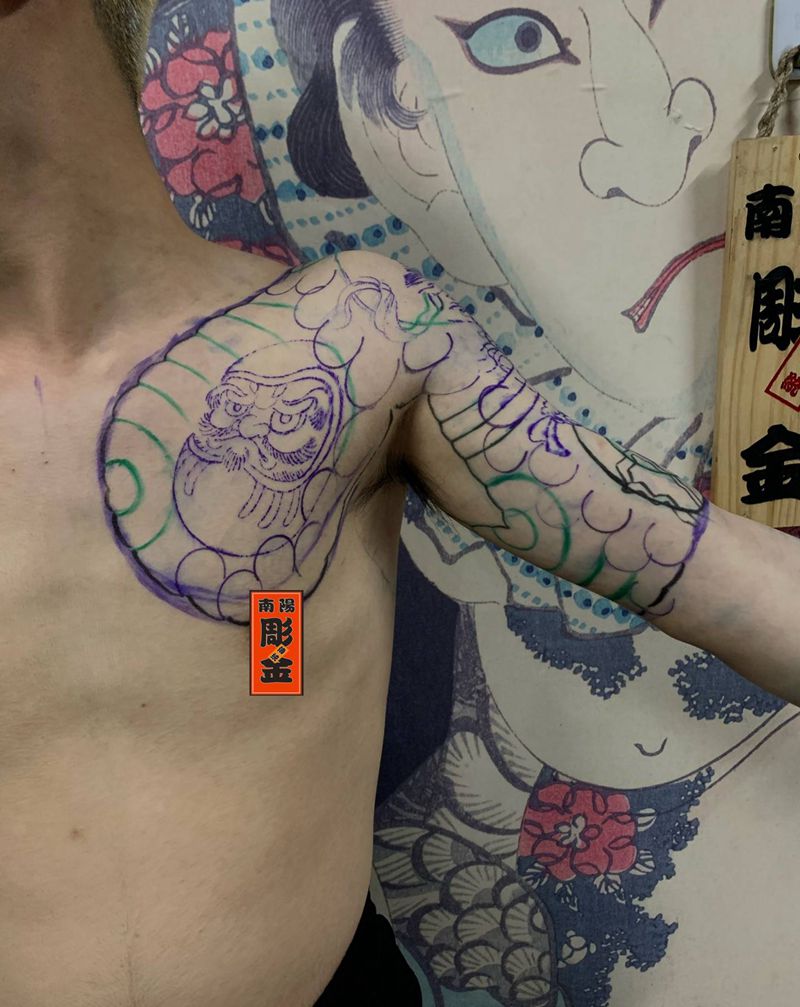 当前位置: 首页 >河南省南阳市纹身店-神雕刺青纹身图案>老传统半甲纹身图片_胸部老传统纹身图案