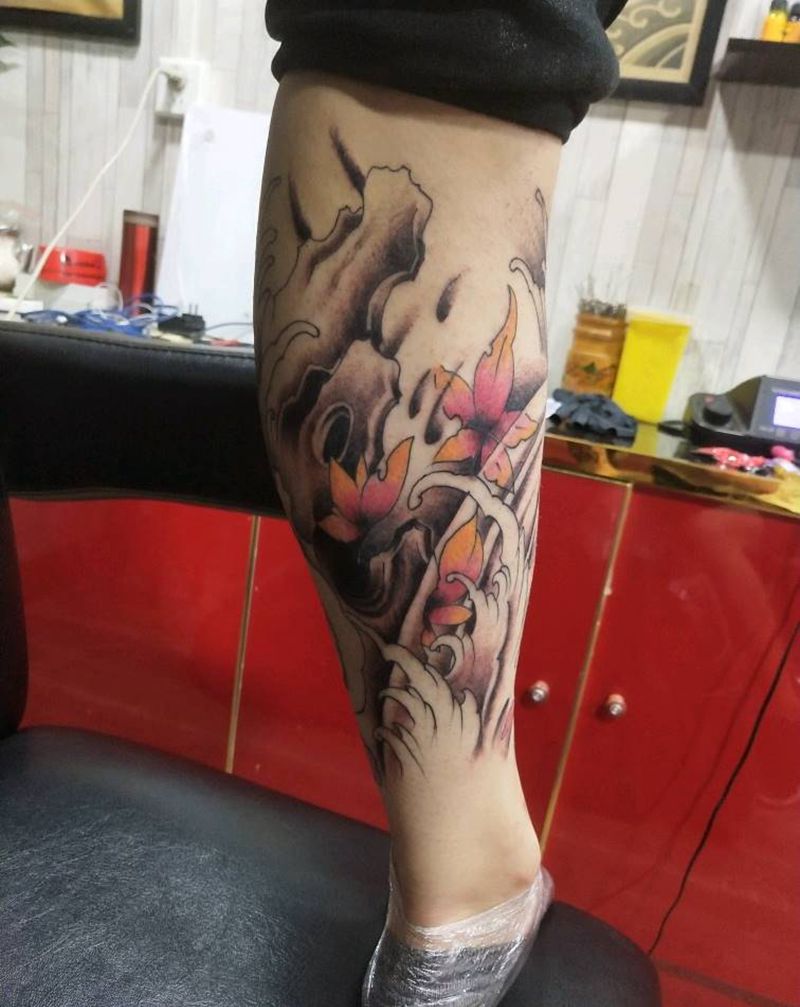 • T网红王老大花腿龙纹身图片_腿部新传统纹身图案