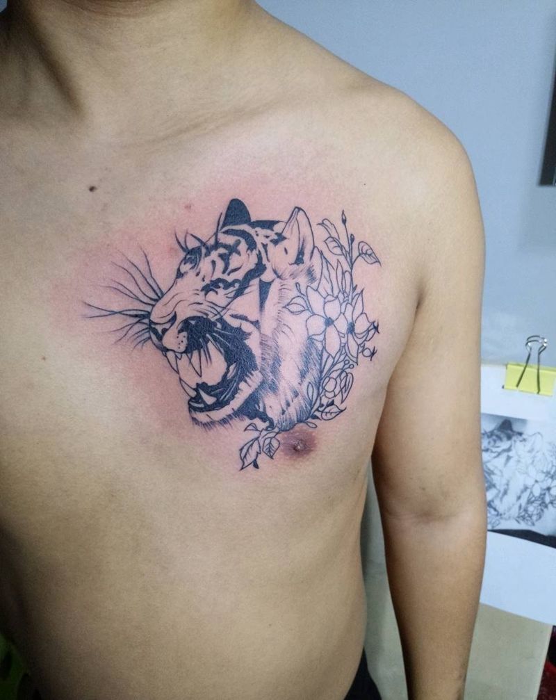 • 女性大花胸纹身_43张霸气漂亮的女性大花胸纹身图案作品