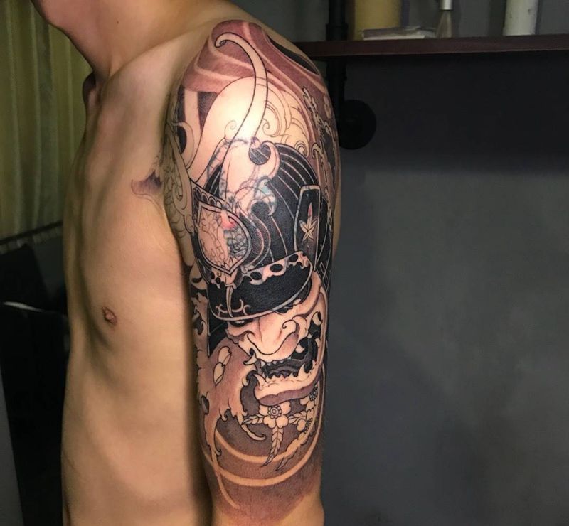 般若遮盖纹身图片_手臂新传统般若遮盖纹身图案