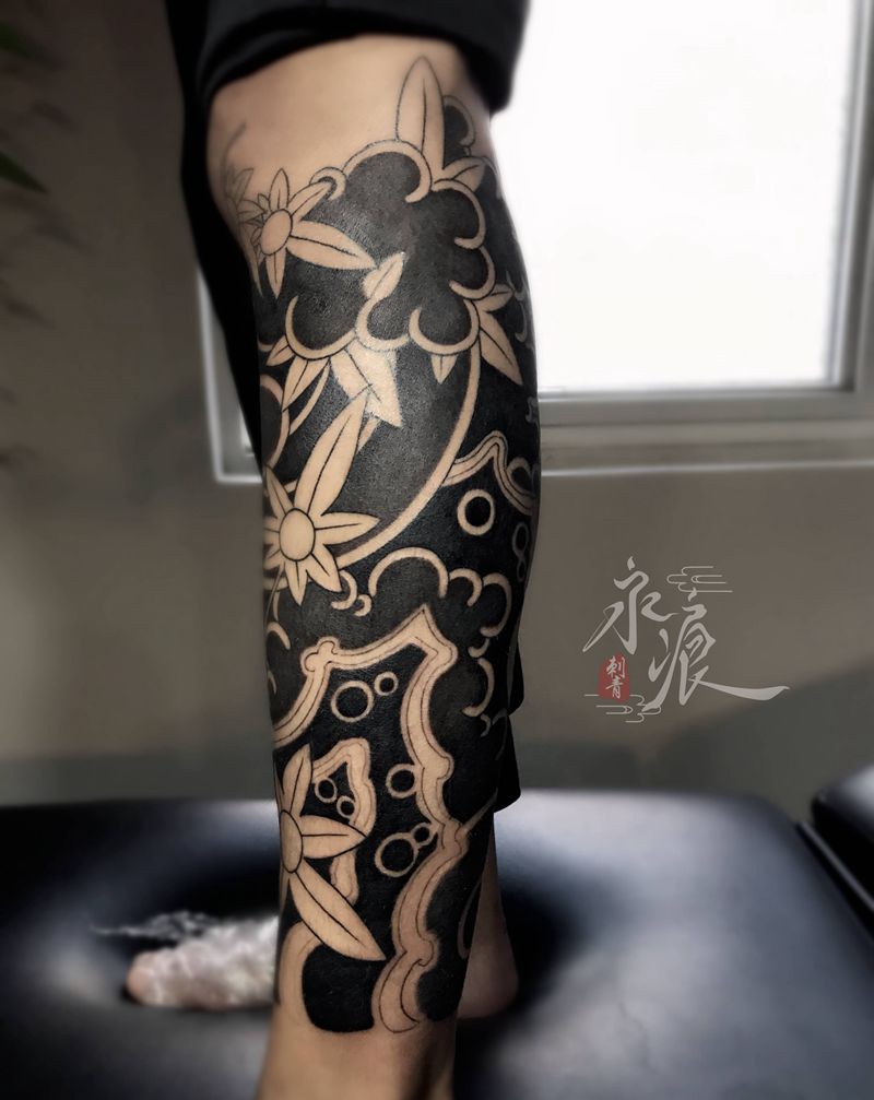 当前位置: 首页 >河南省信阳市纹身店-永痕刺青纹身图案>日式包小腿纹身图片_腿部老传统泡泡云枫叶包小腿纹身图案