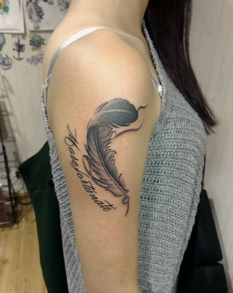情侣羽毛纹身图片_肩部手部清新成品纹身图案