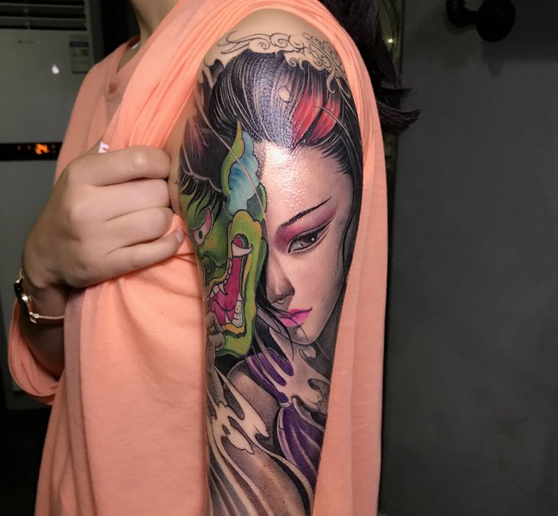 当前位置: 首页 >河南省信阳市纹身店-永痕刺青纹身图案>大臂艺妓纹身图片_手臂新传统般若 艺妓纹身图案