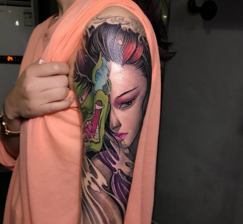 当前位置: 首页 >河南省信阳市纹身店-永痕刺青纹身图案>大臂艺妓纹身图片_手臂新传统般若 艺妓纹身图案