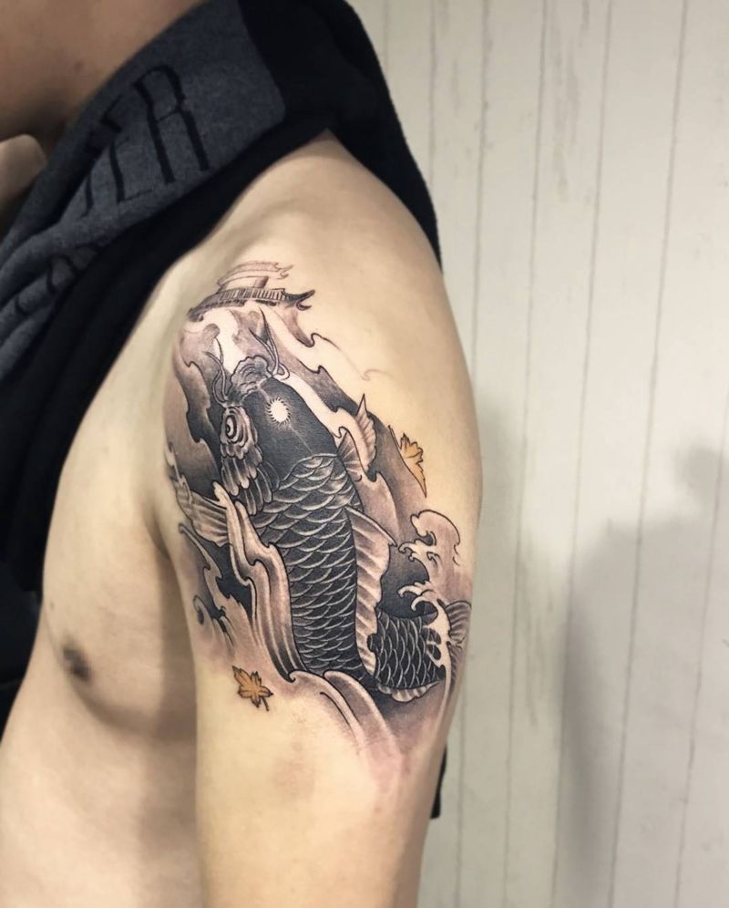 鲤鱼纹身图片_成品肩部背部传统动物纹身图案