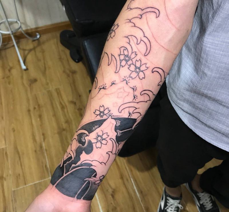 日式版雾纹身图片_成品手部手臂传统原创纹身图案