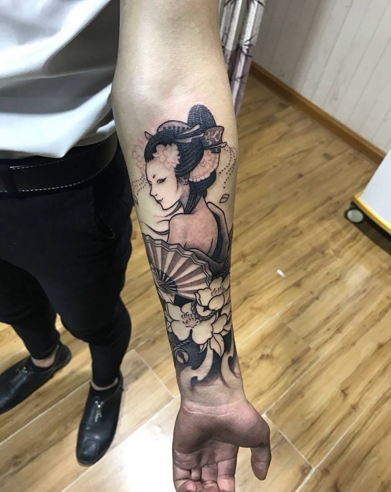 古典美女纹身图片_成品手臂手部传统肖像国画人物纹身图案