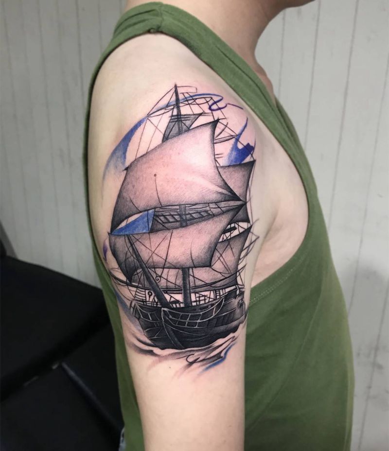 当前位置: 首页 >河南省信阳市纹身店-永痕刺青纹身图案>帆船纹身图片_手臂成品写实欧美静物几何纹身图案