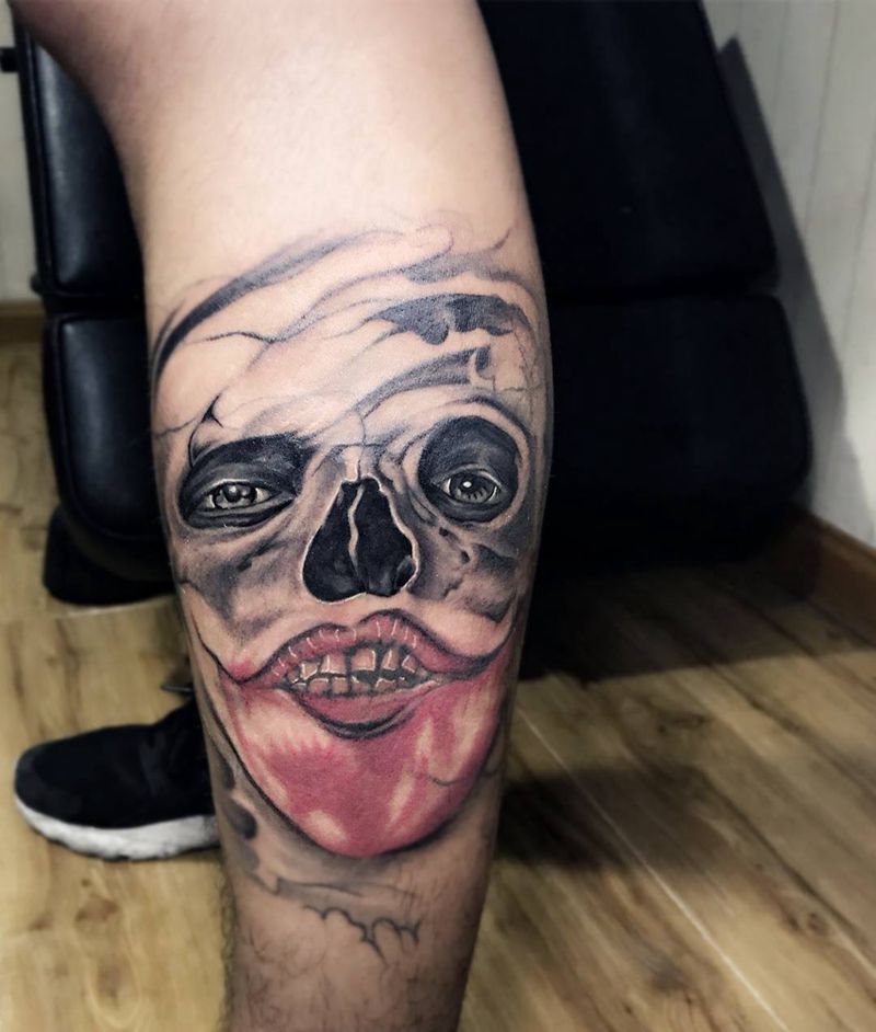 当前位置: 首页 >河南省信阳市纹身店-永痕刺青纹身图案>修改纹身图片_成品腿部欧美肖像写实人物鬼神纹身图案