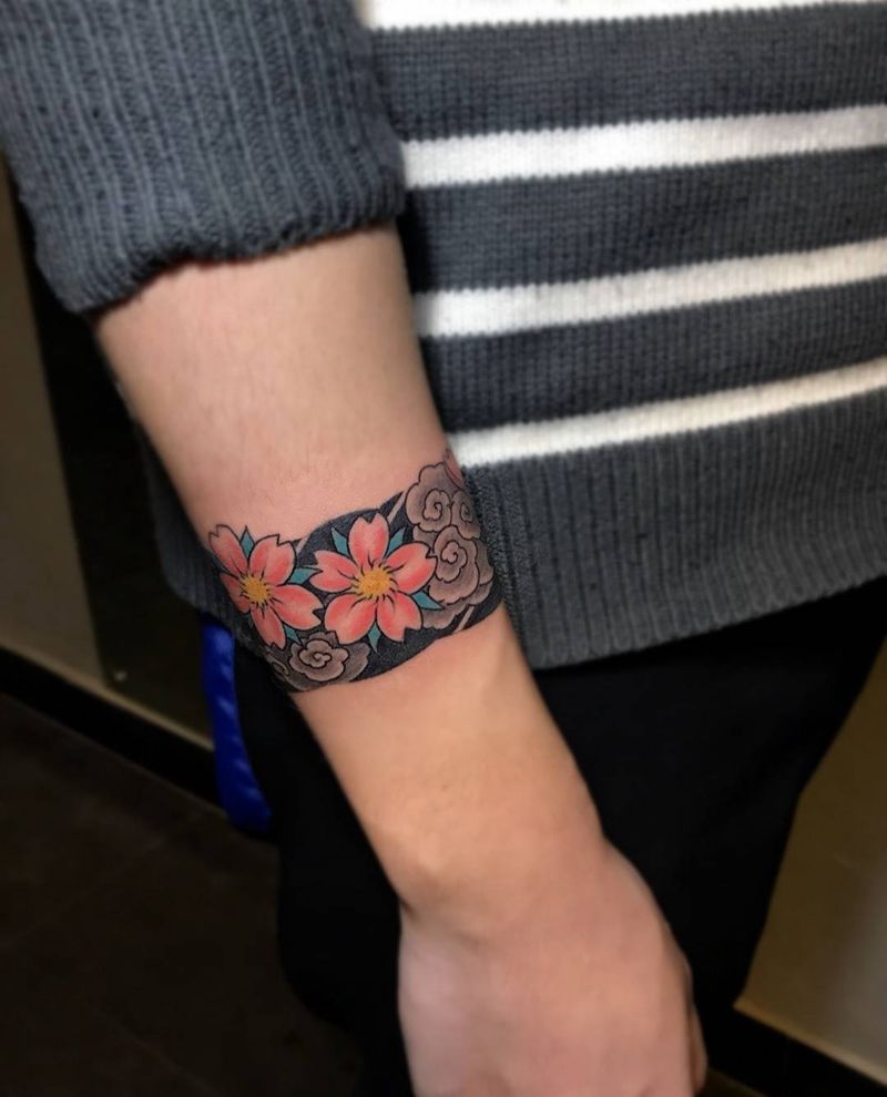 日式手环纹身图片_成品手部传统植物图腾纹身图案