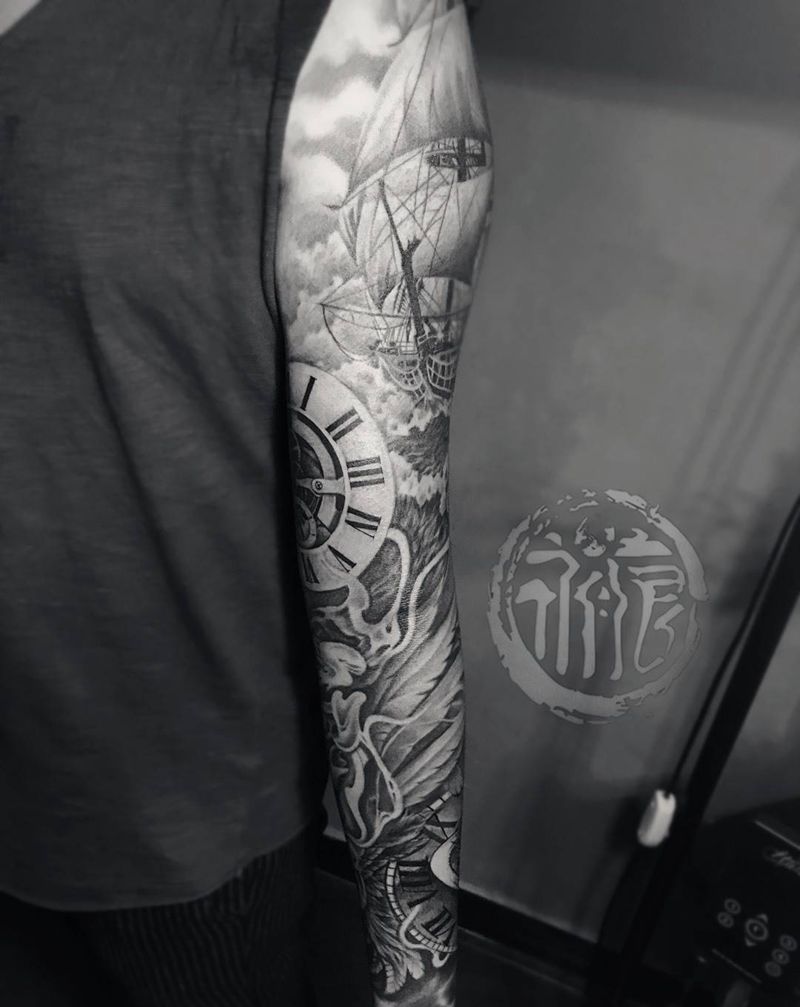 欧美花臂纹身图片_成品手臂欧美写实几何静物纹身图案