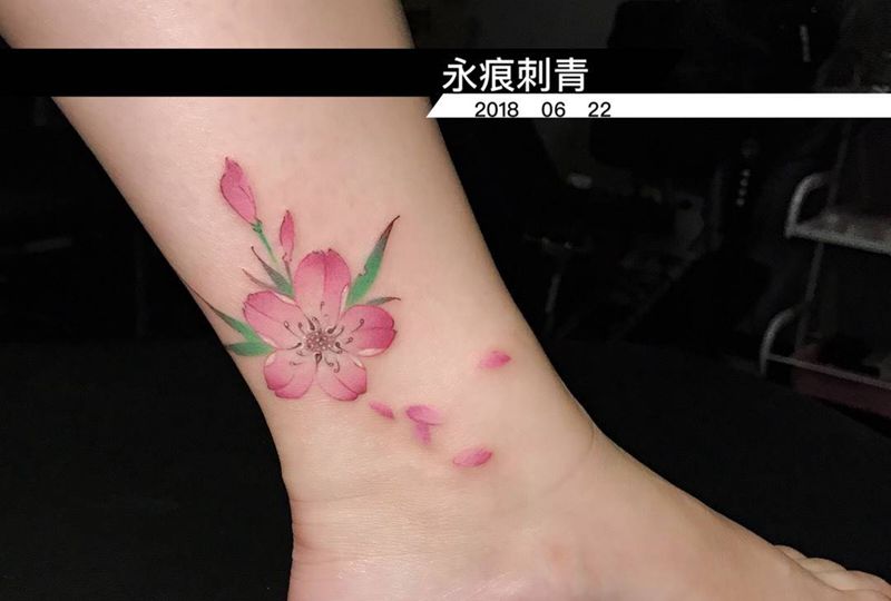 当前位置: 首页 >河南省信阳市纹身店-永痕刺青纹身图案>樱花纹身图片_成品腿部清新传统植物纹身图案