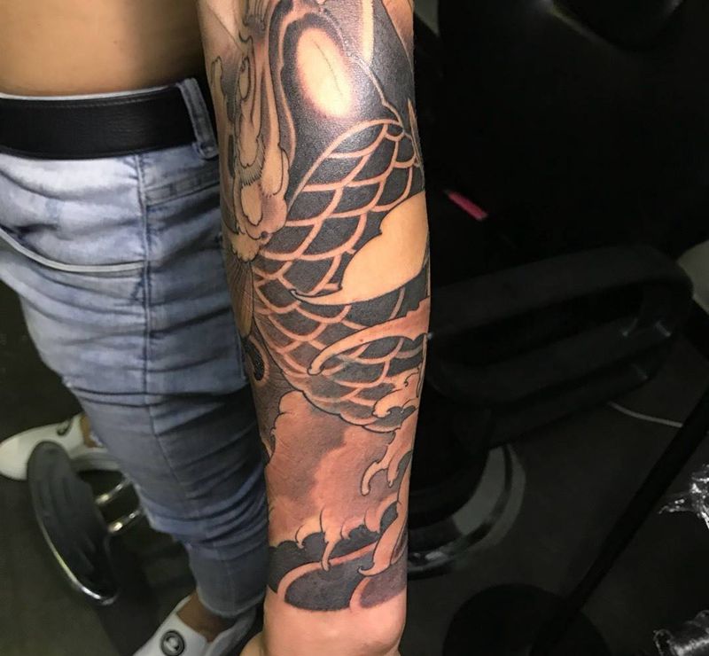 • T网红王老大花腿龙纹身图片_腿部新传统纹身图案