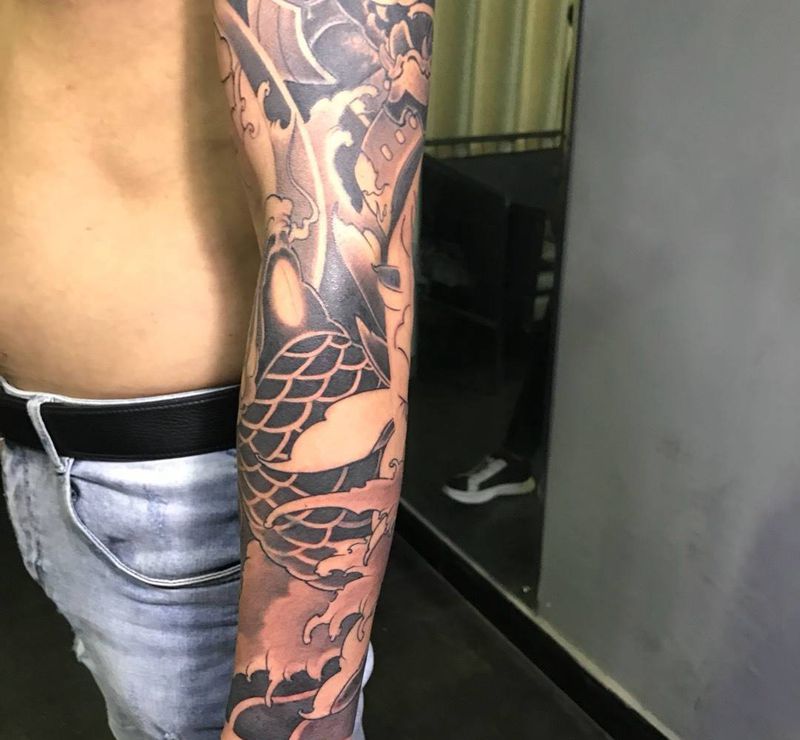 武士花臂(还未完成)纹身图片_成品肖像传统手臂人物鬼神动物植物纹身图案
