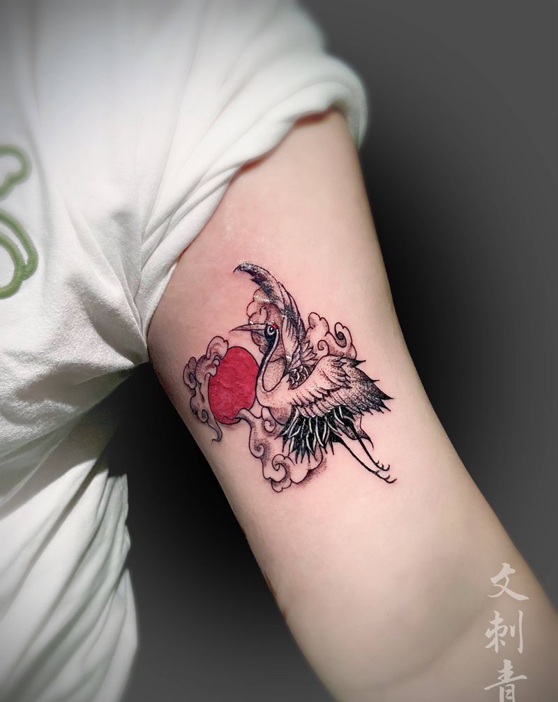 当前位置: 首页 >河南省周口市纹身店-淮阳文·刺青纹身图案>鹤纹身图片_手臂点刺纹身图案