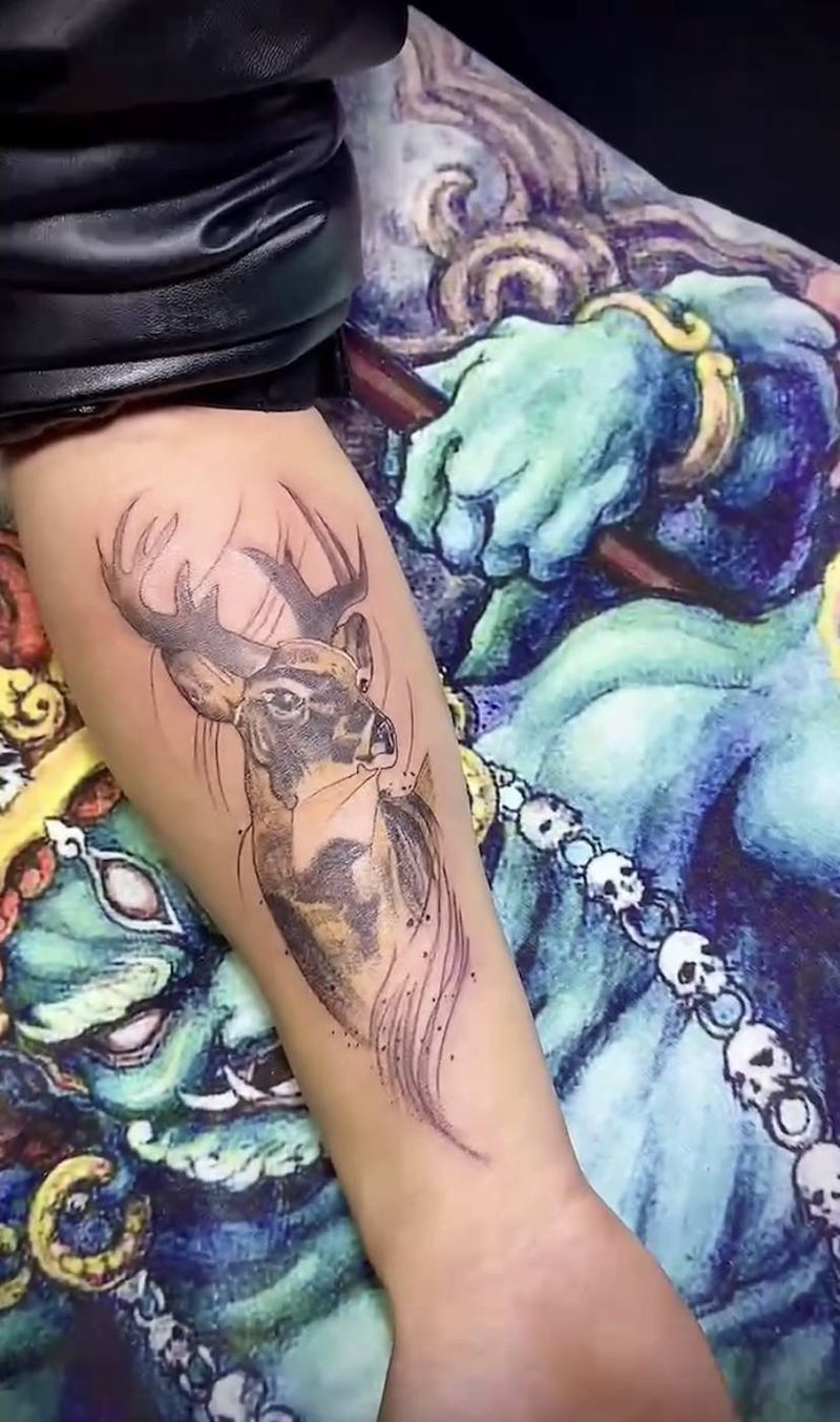当前位置: 首页 >河南省周口市纹身店-淮阳文·刺青纹身图案>鹿纹身图片_手臂欧美写实生财有鹿纹身图案
