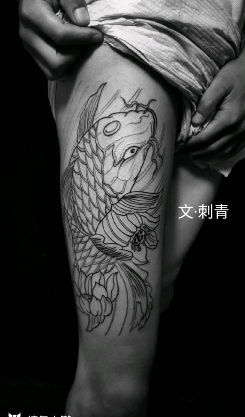 大腿鱼纹身图片_腿部纹身图案