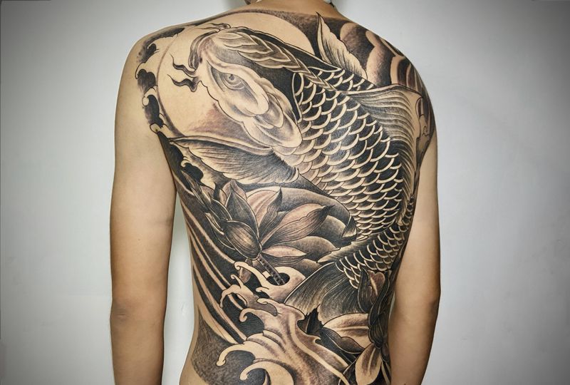 鲤鱼纹身图片_背部新传统满背鲤鱼纹身图案