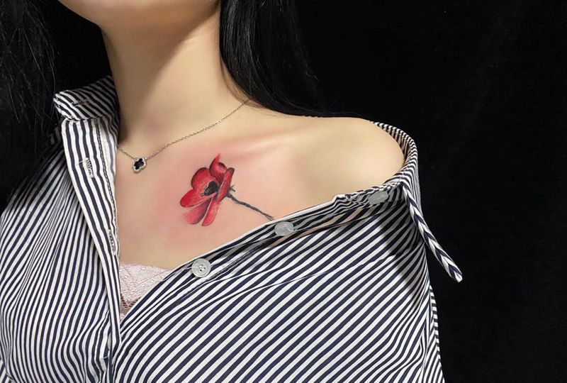 • 女性大花胸纹身_43张霸气漂亮的女性大花胸纹身图案作品
