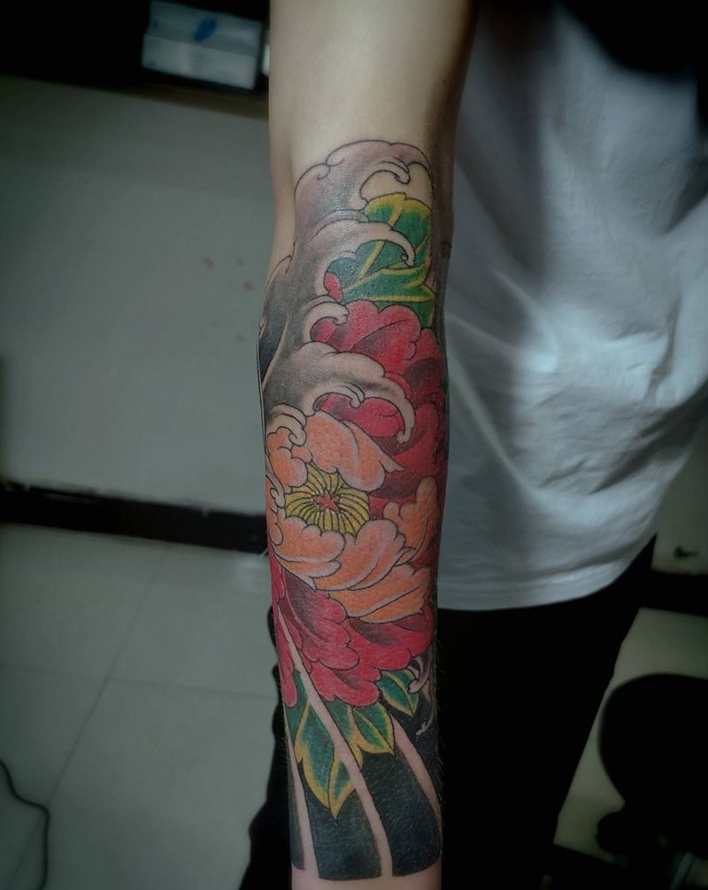 一组15张莲花纹身手