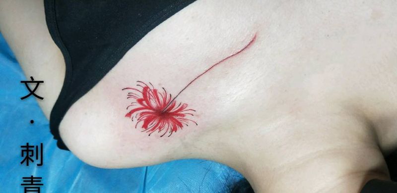 彼岸花纹身图片_肩部胸部水彩纹身图案