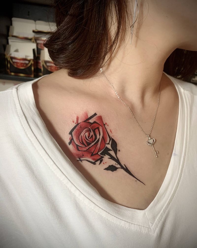 • 女性大花胸纹身_43张霸气漂亮的女性大花胸纹身图案作品