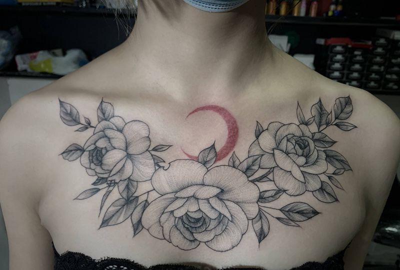 • 女性大花胸纹身_43张霸气漂亮的女性大花胸纹身图案作品