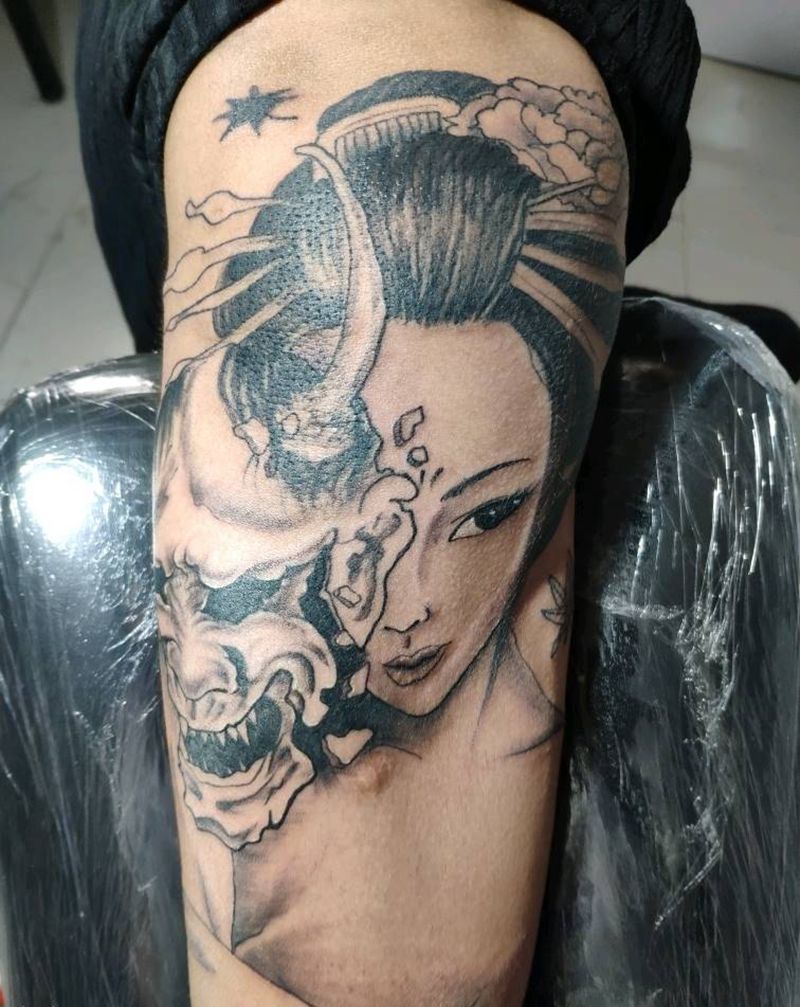 当前位置: 首页 >河南省周口市纹身店-桐丘刺青纹身图案>艺妓纹身图片_新传统纹身图案