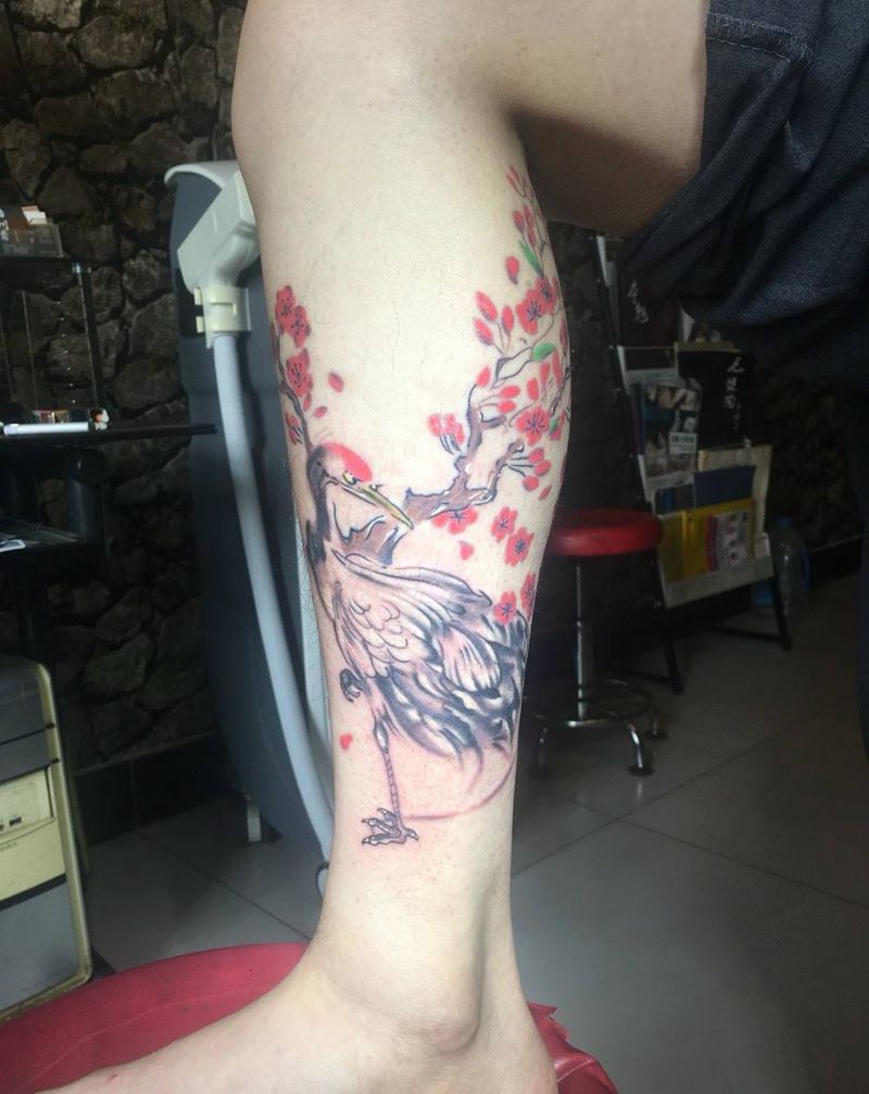 当前位置: 首页 >河南省周口市纹身店-浩刺青纹身工作室纹身图案>仙鹤纹身图片_成品腿部纹身图案