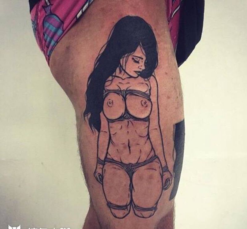 • T包小腿吹火男+阿多福纹身图片_腿部老传统新传统吹火男阿