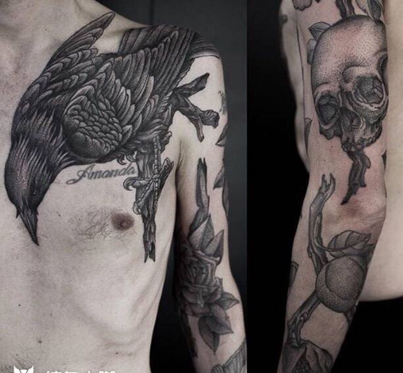 • 男性大花胸_42张优秀的男性大花胸纹身图案图片