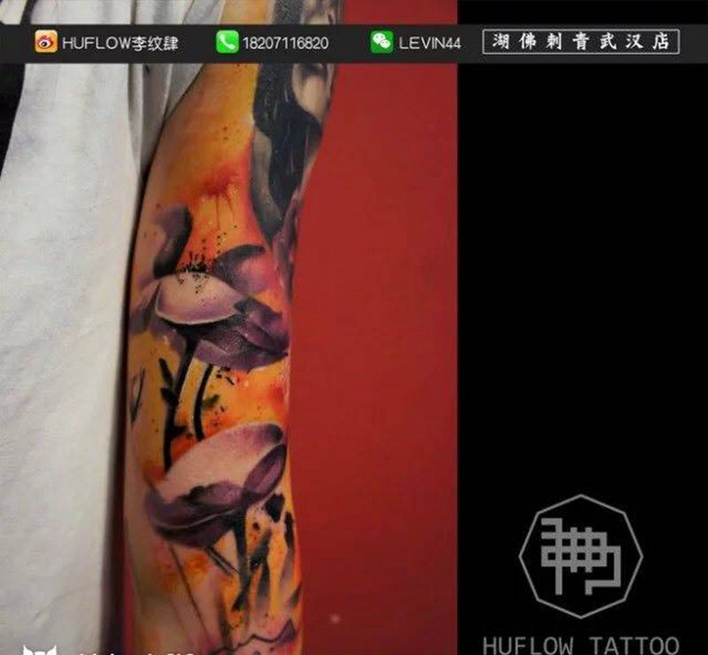 一组15张莲花纹身手