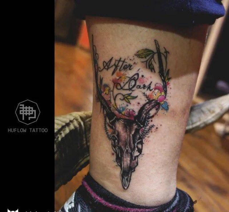 • T包小腿吹火男+阿多福纹身图片_腿部老传统新传统吹火男阿