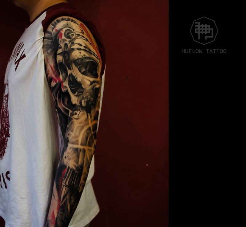 当前位置: 首页 >湖北省武汉市纹身店-武汉湖佛纹身纹身图案>花臂头骨纹身图片