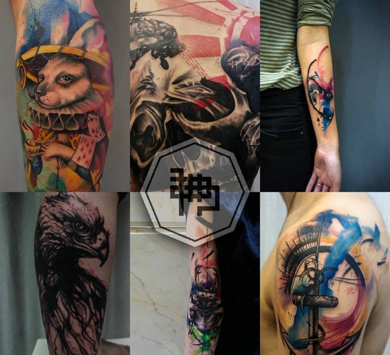 当前位置: 首页 >湖北省武汉市纹身店-武汉湖佛纹身纹身图案>工作记录纹身图片_成品手部肩部脚部欧美国画写实几何人物原创纹身图案
