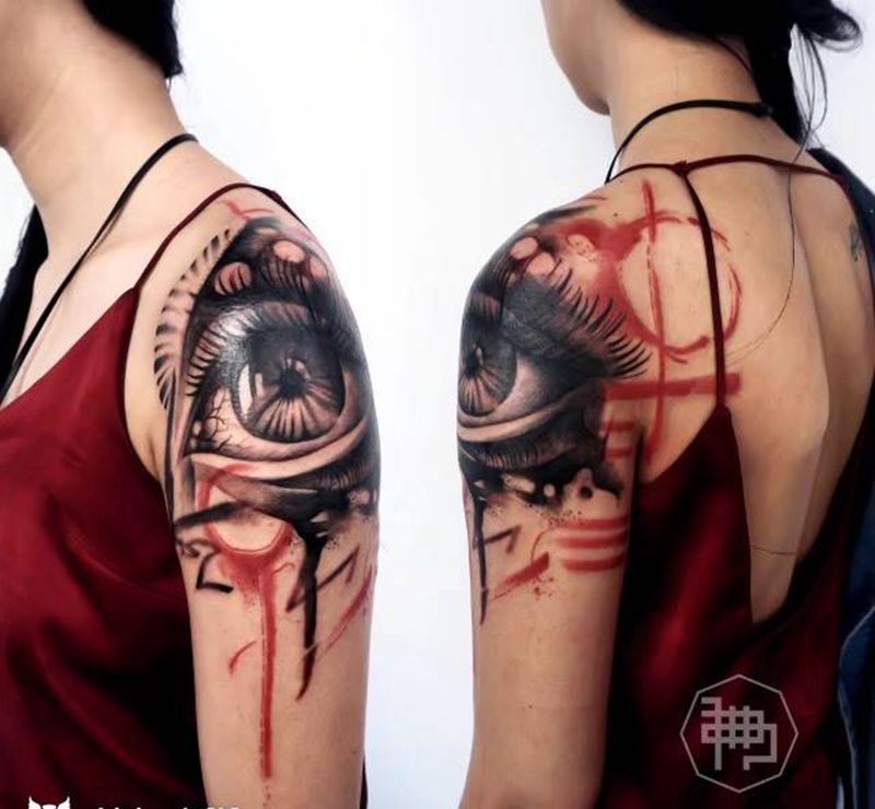 • 纹身吧推荐的披肩图腾半胛纹身图案作品展示