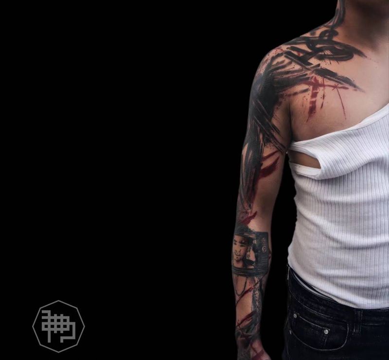 当前位置: 首页 >湖北省武汉市纹身店-武汉湖佛纹身纹身图案>墨纹身图片_国画成品手臂原创纹身图案