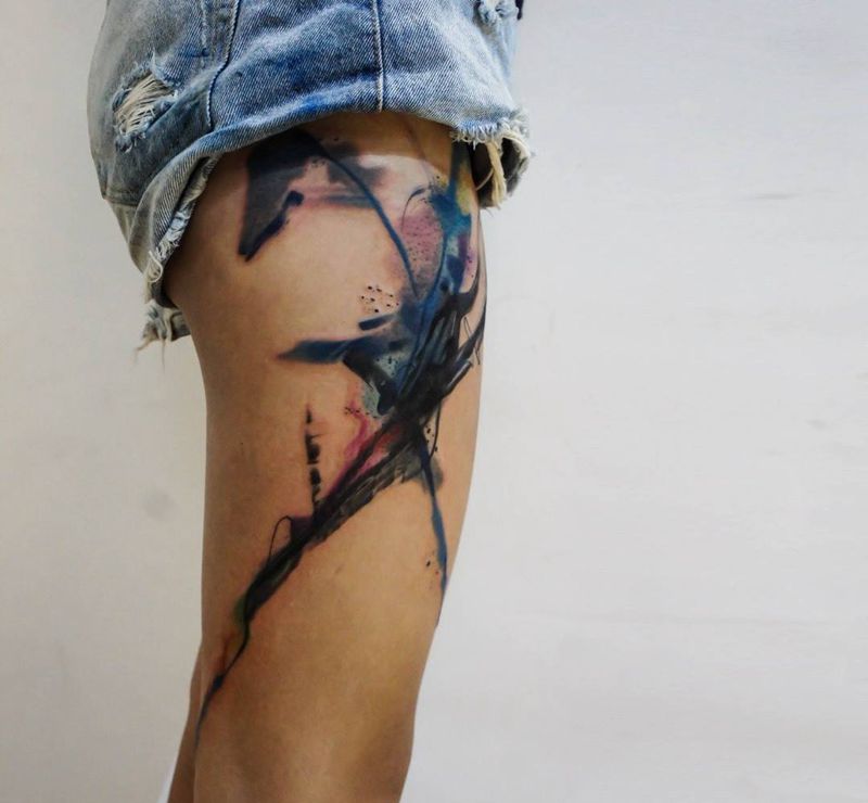 宁静纹身图片_腿部脚部欧美原创泼墨纹身图案